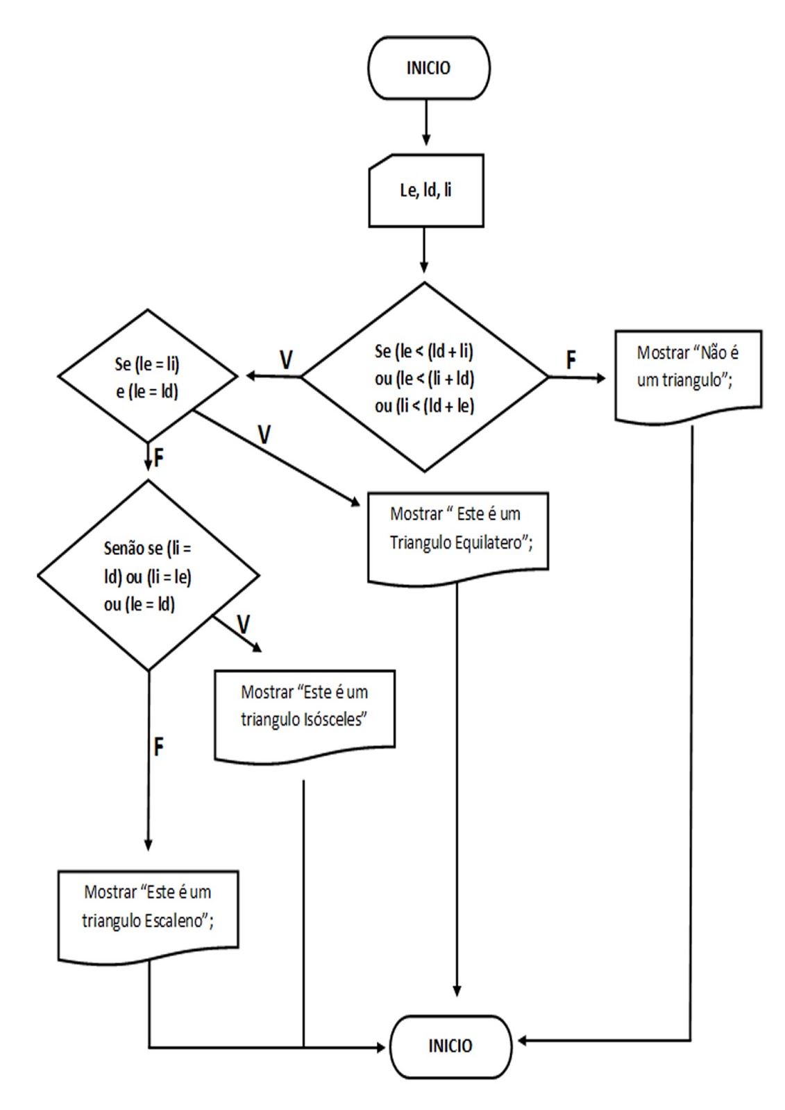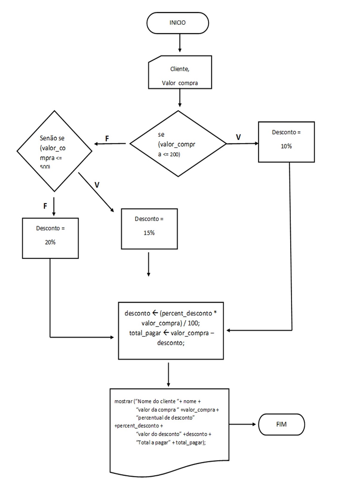 Abaixo representaremos o algoritmo acima em diagrama de blocos ou fluxograma: